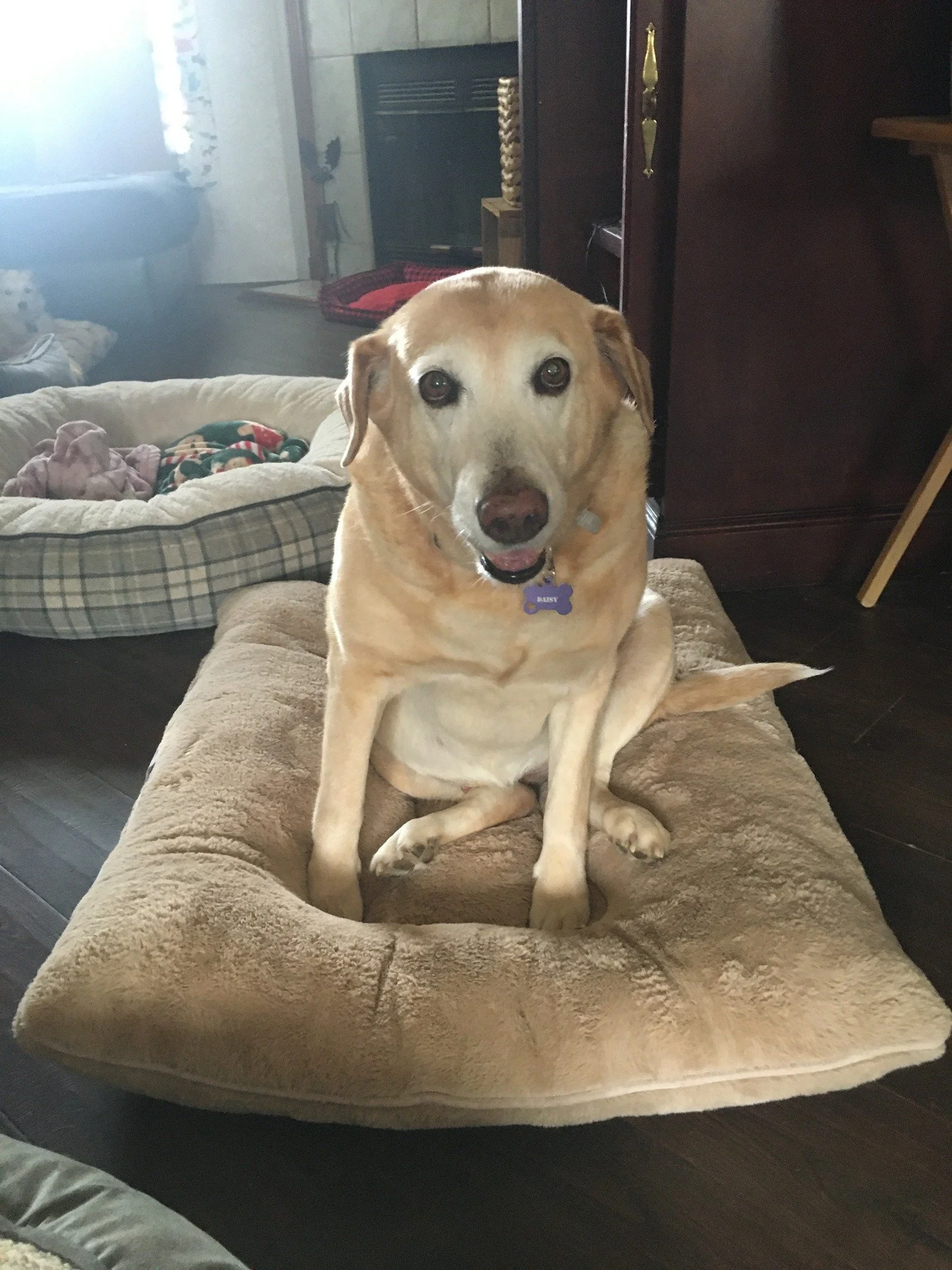 Daisy (13) is 70 pounds of pure Labrador love. She is sweet, gentle and easy going. She handled all of her travels and change with style and grace. She does great with other dogs. We are so grateful to have been able to help her. She is heartworm positive and needs medication. She also needs a special diet to help her lose a little weight to make her more comfortable. Daisy will likely need some pain management. We need to raise money for her vet visit, pain meds, heartworm meds and dental cleaning/extraction. Our rescue covers all the costs of care given by Fosters to help the dogs become more adoptable.