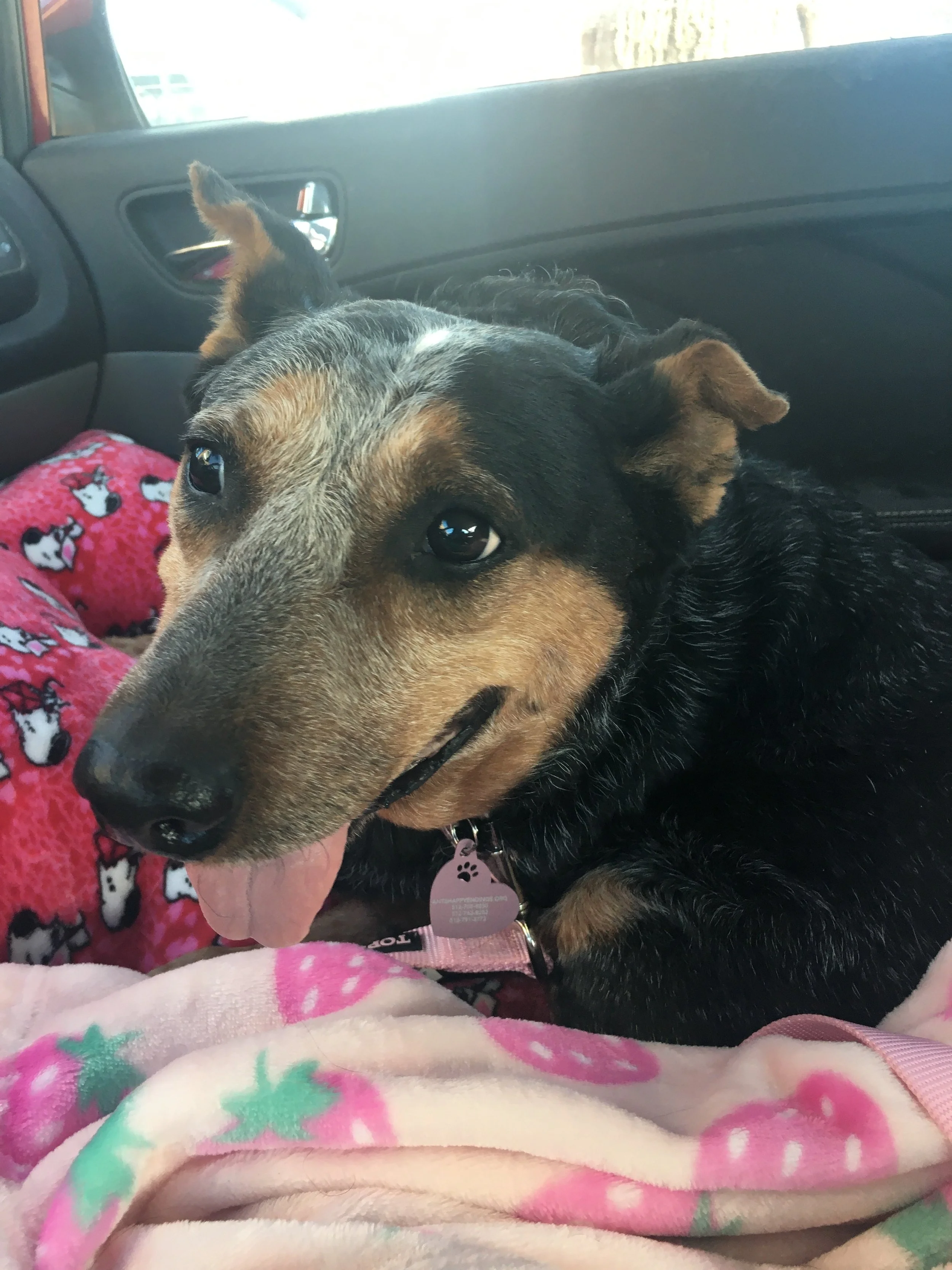 Donna Summer, better known as Jellybean, joined Ant’s Happy Endings in early February after being pulled from a local shelter. This sweet girl is ready for a fresh start and a cozy place to call home. Weighing about 42 pounds, Jellybean could stand to lose a little weight, but her laid-back personality is already perfect. She does great with other dogs and would thrive in a calm home where she can enjoy her favorite activities: naps, lounging nearby her people, and soaking up affection. She would do best in a home without cats.